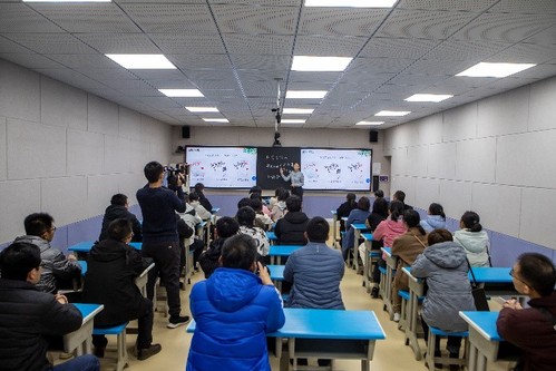 本次活动共分两个阶段。第一阶段,全体教师、员工在周谋远董事长的带领下参观了王村中学,了解公司的发展历史和办学条件;现场参观公司开发的特色课程、齐竽韶韵工作室和民间彩绒技艺工作室;淄博市青年教师基本功大赛特等奖获得者宋海月老师为大家进行了模拟讲课展示,青年教师毕毅向大家介绍了公司物理实验信息化教学的情况;最后,周董事长给大家做了专题报告,围绕欣赏教育、教育情怀和教师专业发展等问题与大家进行了交流分享。