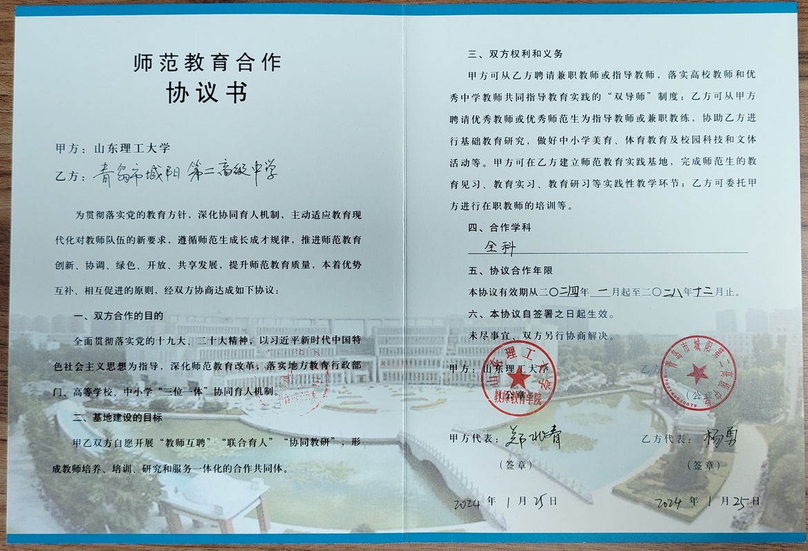 bevictor伟德官网与青岛市城阳第二高级中学签定师范教育合作协议