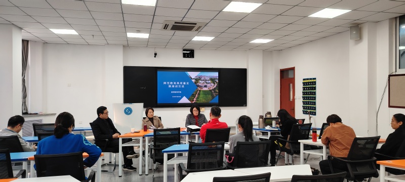 “反思”是研讨会的第二个环节,暨教师前段时间相互听课情况交流。公司全体教师一一发言,既总结了互相听课带来的启发,也提出了教书育人过程中的困惑。郑兆青结合自身教学体验为大家答疑解惑,勉励全体教师建立师范教育共同体理念,从课堂管理、协同育人、教学规范建设等方面进行有组织的教科研,提升师范教育育人能力。